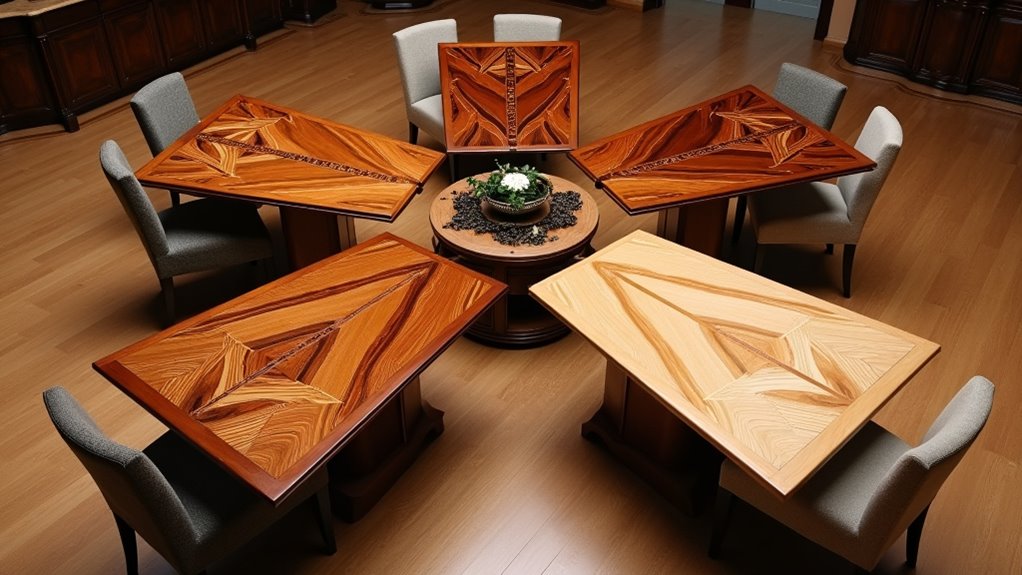 The top 5 best expandable dining tables for 2025 exhibit a blend of craftsmanship and style. The Harlow offers a rustic solid wood charm, while the Greystone presents a modern metal base with versatile seating options. The Madison combines sophistication with ample space, and the Newport prioritizes clean design and efficient storage. Lastly, the Kensington features a customizable double leaf mechanism for expanded capacity. Each table caters to diverse aesthetics and needs, inviting further exploration into their unique features.