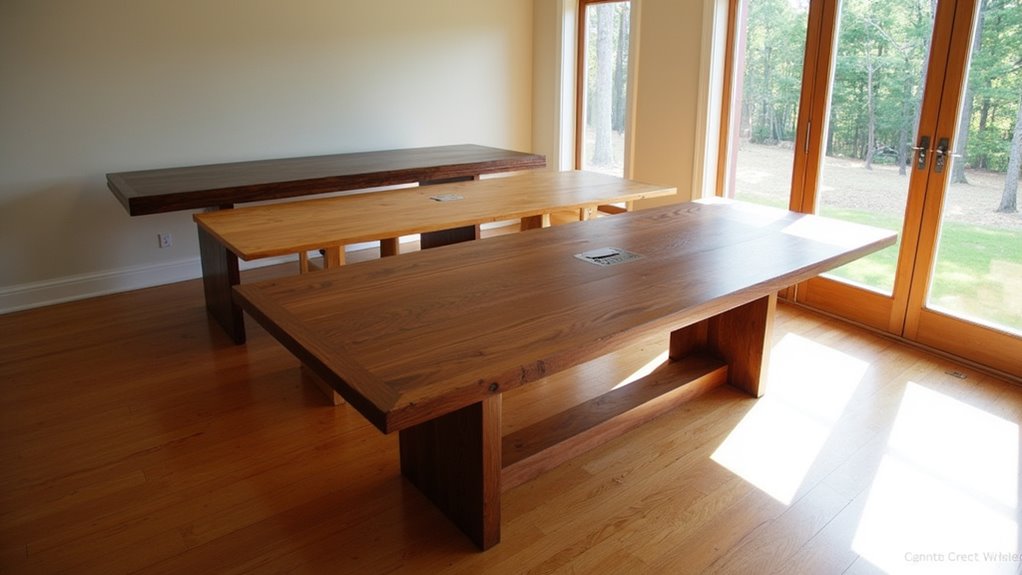 The top three walnut dining tables on sale feature exceptional craftsmanship and striking design. Stickley’s Walnut Grove Extendable Table is crafted from solid American black walnut and extends up to 110 inches, ensuring ample space for gatherings. Moe’s Malibu Walnut Dining Table is versatile, accommodating up to ten guests with its clean lines. Lastly, Castlery’s Vincent Dining Table combines a unique character with safety-focused design, seating 4 to 6. Discover the distinctive features of each option that elevate any dining experience.